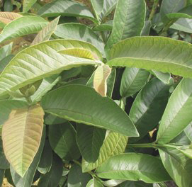 その葉や果実には天然のミネラルやビタミン類がバランス良く含まれているだけでなく、美白成分として化粧品に多用されるエラグ酸や、抗酸化力のあるタンニン類などのポリフェノールが豊富に含まれています。これらグアバ葉のポリフェノールのさまざまな働きが研究されており、たとえばヤクルト本社より発売されているグアバ茶「蕃爽麗茶」は、糖質の吸収を減少させ血糖値の上昇を抑える効果が認められて、厚生労働省の特定保険用食品の認可を受けました。